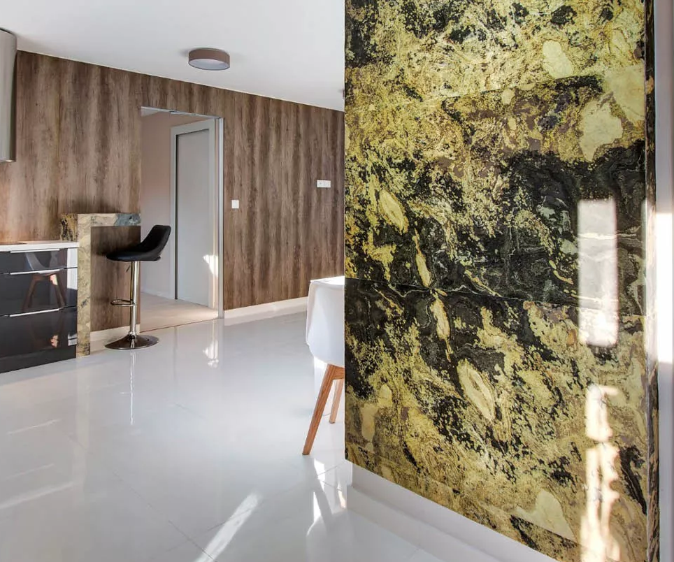 The AIR-board Stone Light panels are unique, translucent panels crafted from a combination of real stone (specifically slate) and a lightweight, translucent material. These panels allow for high-light transmission, making them ideal for various decorative applications. They can be utilized in creating countertops, furniture, and design elements and in constructing illuminated walls and ceilings.